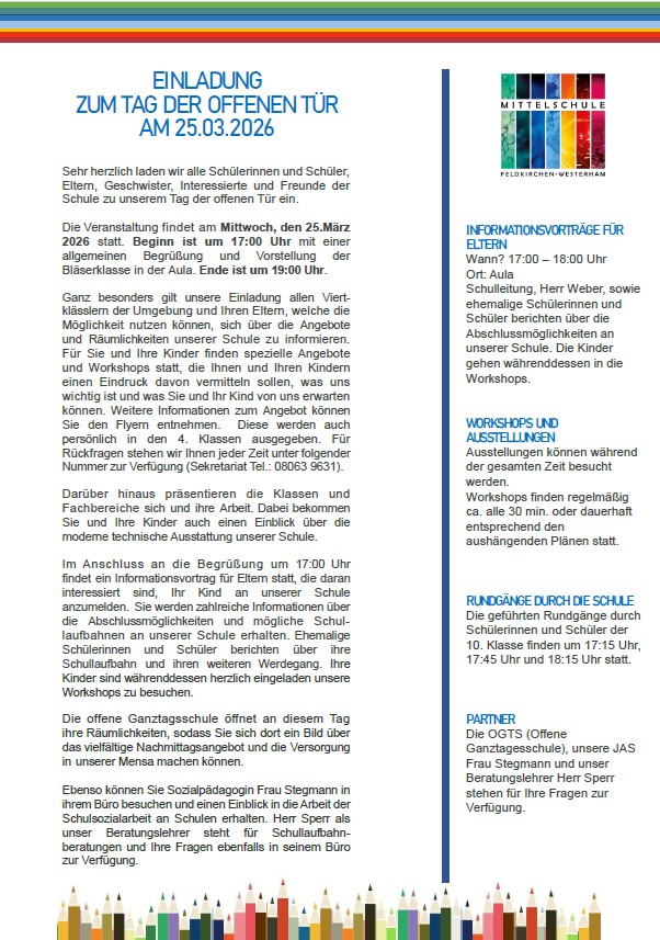 Tag der offenen Tür der Mittelschule Feldkirchen – Westerham Liebe Mitbürgerinnen und Mitbürger, am 14.…